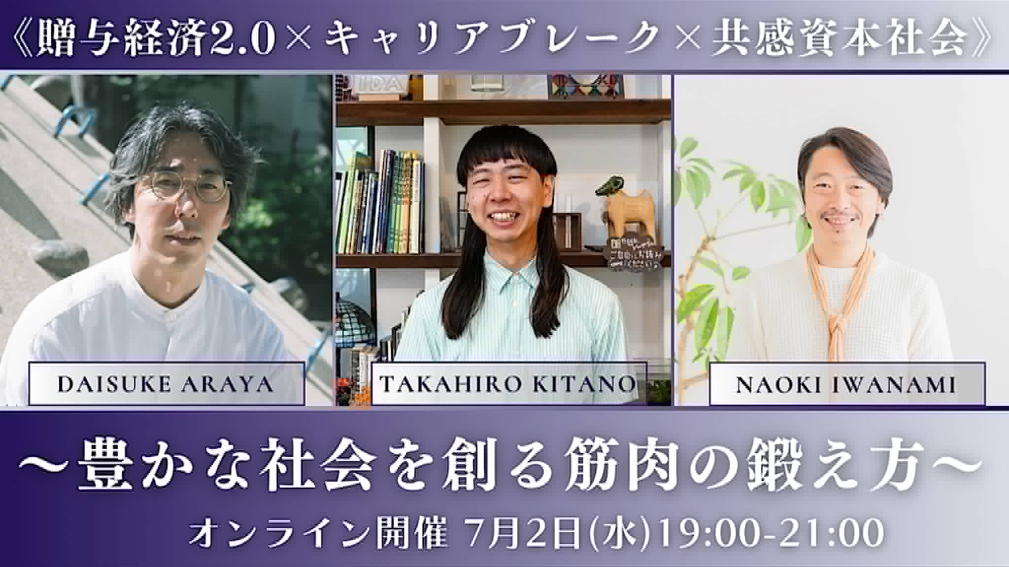 『贈与経済2.0 × キャリアブレーク × 共感資本社会』〜豊かな社会をつくる筋肉の鍛え方〜