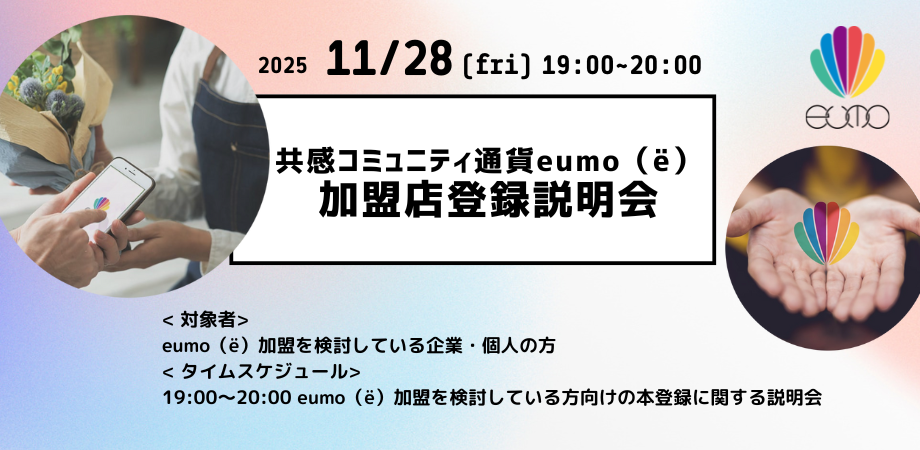 11月共感コミュニティ通貨eumo(ë)加盟店登録説明会(オンライン交流会)